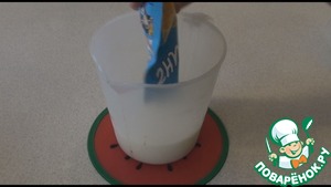 В 50 мл горячего молока всыпаем пакетик капучино, размешаем и оставляем остывать.