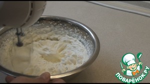 После этого понемногу добавляем крем в взбитые сливки и хорошо взобьем.