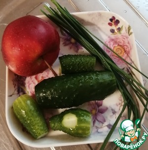 Итак, нам понадобится огурец, яблоко и зелёный лук.