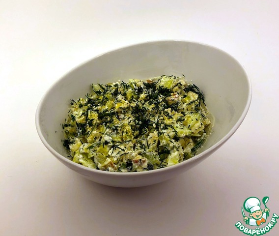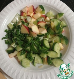 Нарезать мелко укроп, лук, огурец и яблоко.