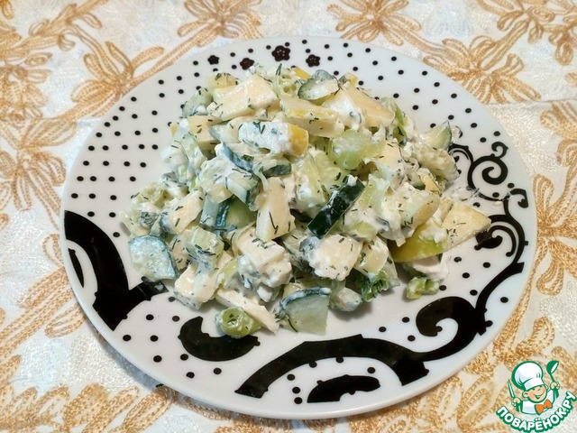 Очень интересный и вкусный салат. Комбинация освежающих огурцов и сладко-кислых яблок. Рецепт из кулинарной книги о персидской кухне от Сабрины Гхайюр.