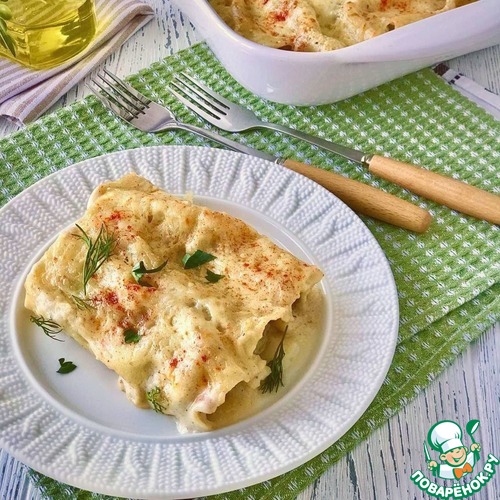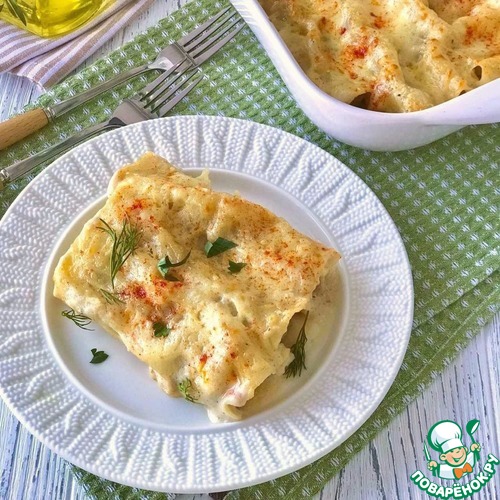 Рецепт «Каннеллони с грибами под сырным соусом»: