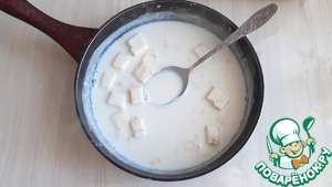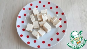 • Сливочный сыр (в рецепте был использован специальный сливочный сыр для супов и соусов с грибами) нарезать на кубики.