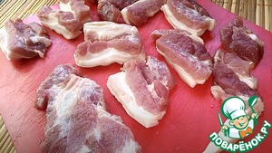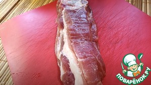 2) Свиную грудинку промываем, потом можно обрезать шкуру и косточки, если они есть.