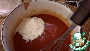 6) Затем добавляем 2 ст. л муки, перемешиваем. Кляр должен быть слегка густым.