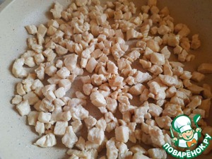 Обмойте филе, промокните бумажными полотенцами и нарежьте на мелкие кубики (буквально по 1,5 см).