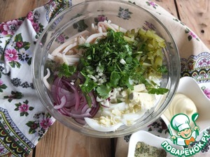 На мой взгляд петрушка отлично сочетается с кальмарами, поэтому советую ею не пренебрегать. -