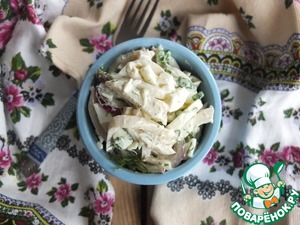 Похожий салат ранее опубликовала Машенька (Mary Stone), увидела вариантах, когда начала оформлять рецепт. Поскольку отличия все таки есть, публикую свой вариант с чистой совестью