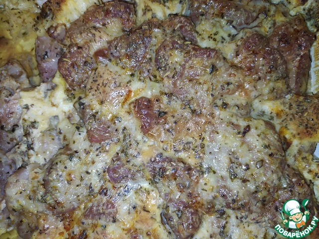 Щедро присыпьте мясо прованскими травами и пока отложите.