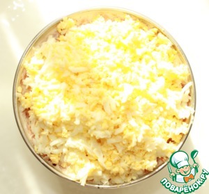 • Шестой слой - натертые отварные яйца + соль по вкусу.