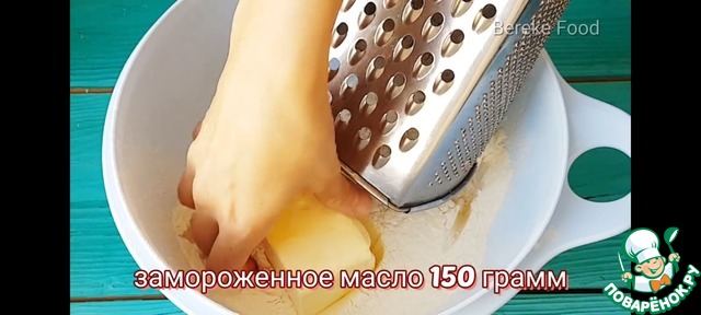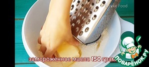 В муку натираем замороженное сливочное масло, с неё делаем крошку. Затем добавляем сахар перемешиваем хорошо.