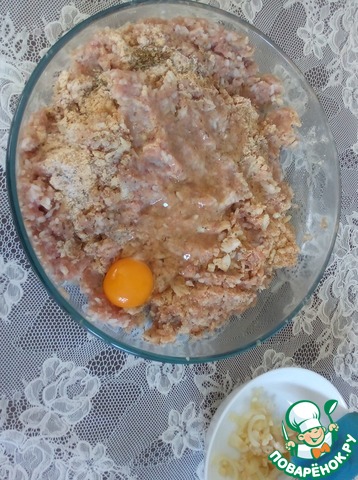 - Фарш мясной (Использовала свино-куриный, он довольно-таки сочный и нежный.) — 500 г