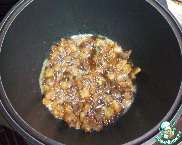 Посолить, поперчить по вкусу, залить кипячёной водой, снова накрыть крышкой и продолжить тушение.
