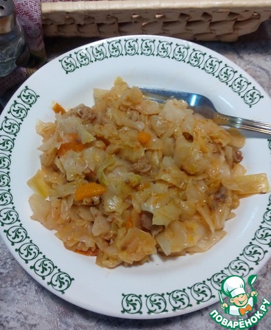 Блюдо подавать горячим. В особенности хороша капуста с гренками из белого хлеба и чесночным соусом (майонез + измельченные зубчики чеснока + измельченная зелень петрушки и укропа). Приятного аппетита!