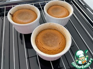 Формочки для выпечки обильно смазываем сливочным маслом и обсыпаем мукой. Наполняем, не доходя до края на палец. Мои формы с внутренним диаметром 8 см наполнены каждая по 100 мл.