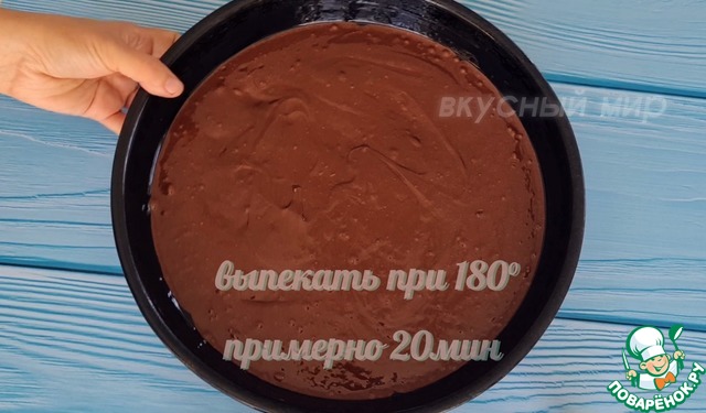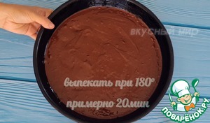 • Форму для выпекания смазать растительным маслом. Диаметр формы 32-34см Вылить тесто в форму, разровнять. Выпекать шоколадный бисквит в духовке, предварительно разогретой до 180 градусов, примерно 20 минут, до готовности (можно проверить зубочисткой - она должна выходить из бисквита сухой).