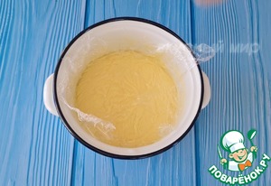 • Затем снять крем с нагрева, добавить сливочное масло, перемешивать и накрыть плёнкой в контакт и оставить остужаться.
