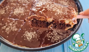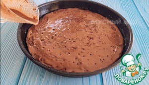 • На остывший шоколадный бисквит с пропиткой выложить заварной крем и аккуратно разровнять.