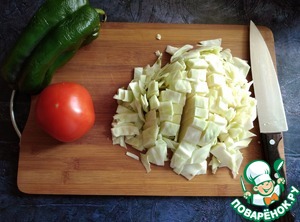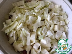 Готовим овощи в процессе. Капусту шинкуем не мелко и не тонко.