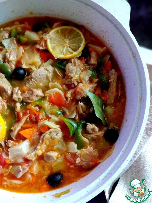 Рецепт «Мясная солянка, припущенная с овощами»: