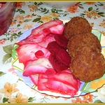 2. Свеклу и чеснок нарезать кружочками.