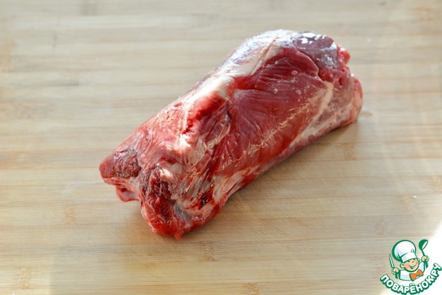 Итак, перед вами спинка домашней козы. Эта часть туши, конечно же пригодна только для длительной варки или тушения, томления. Спинку можно разрезать на фрагменты по позвонкам, или томить целиком, если есть посуда по размеру.