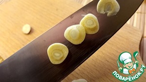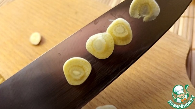 10) Затем на эти кусочки свинины укладываем чеснок.