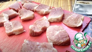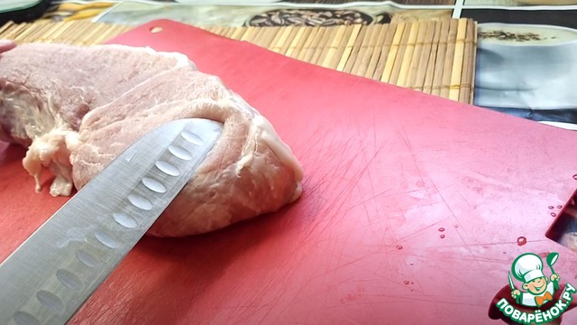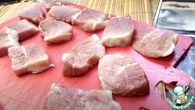 3) Свинину для начала подготавливаем, промываем, обсушиваем бумажным полотенцем, и подрезаем где это нужно ( жир, жилки и тд )