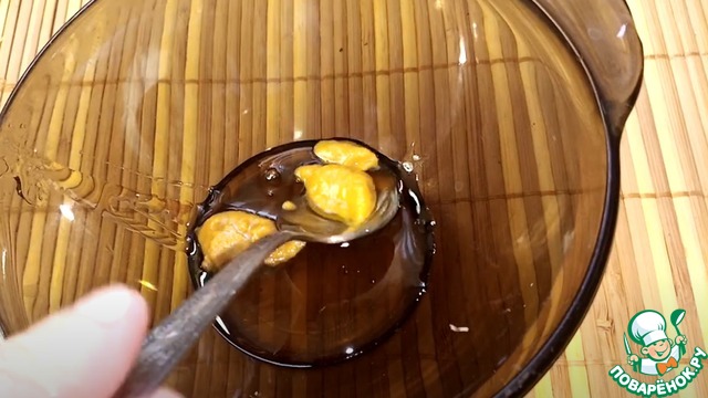 6) В отдельной тарелке делаем «маринад» из горчицы по вкусу ( или половинка ч. л ) и 3 ч. л меда. Перемешиваем.