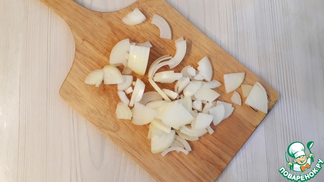 Репчатый лук (1 шт.) нарезать полукольцами.
