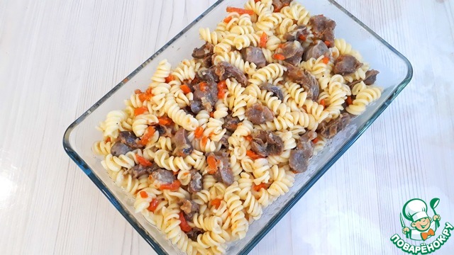 Рецепт «Куриные желудочки по-флотски под сыром»:
