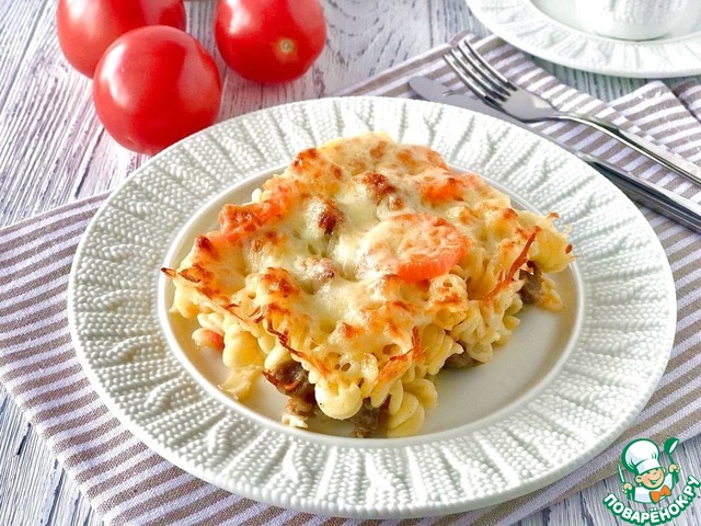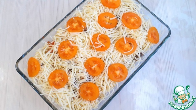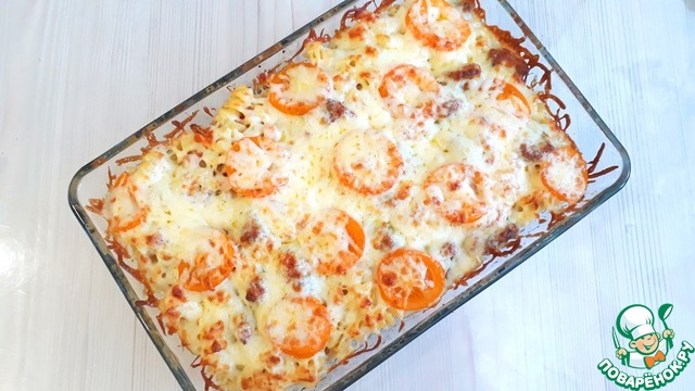 Форму поместить в хорошо разогретую духовку. Запекать блюдо до расплавления сыра и красивой румяной корочки.