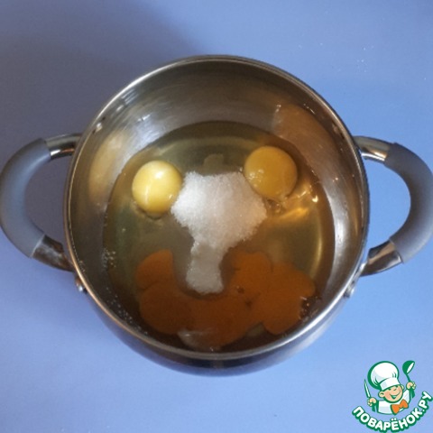 Смешать вместе яйца, соль, сахар.