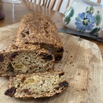 Сегодня повторила эксперимент! Именно эксперимент, потому что взяла те же продукты и в том же количестве, что и раньше, т.е половину порции. Только форма для выпечки у меня была керамической 12*15*4. (Этот хлеб не очень сильно поднимается, высоты хватает) Результат абсолютно другой! Очень вкусный хлеб с фруктами!! Такой как надо, и такой, как хотелось получить.