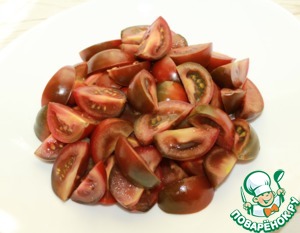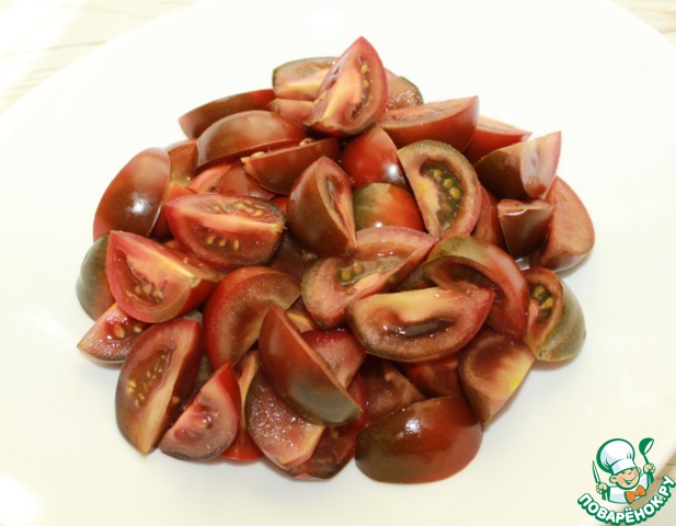Помидоры нарезать на произвольные кусочки.