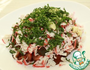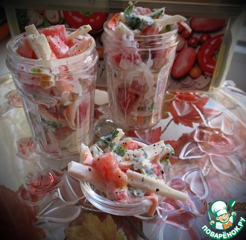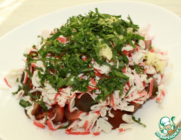 Салат из помидоров с крабовыми палочками