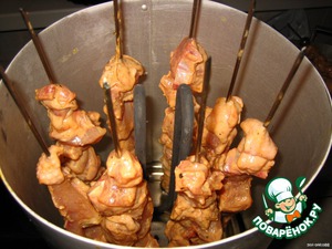 Шашлык планировали на природе, но утром, конечно же, стало лень топать на холод))) и вот замочила я куриные грудки и достала свой доисторический "огонeк"... Получилось сочно (как ни странно) и очень вкусно! Не знаю, есть у кого такой агрегат или нет, но для уличного мангала я мариную также)))