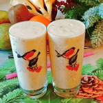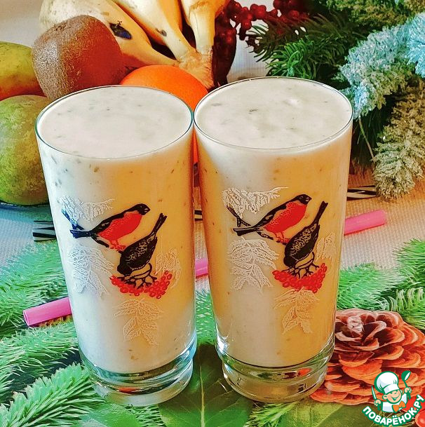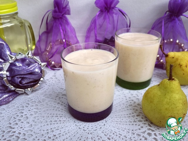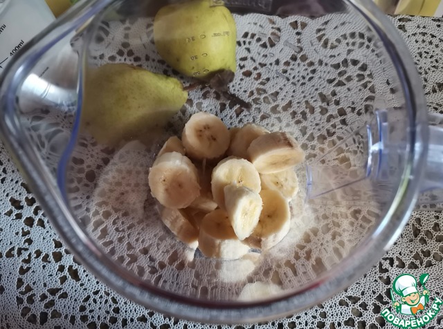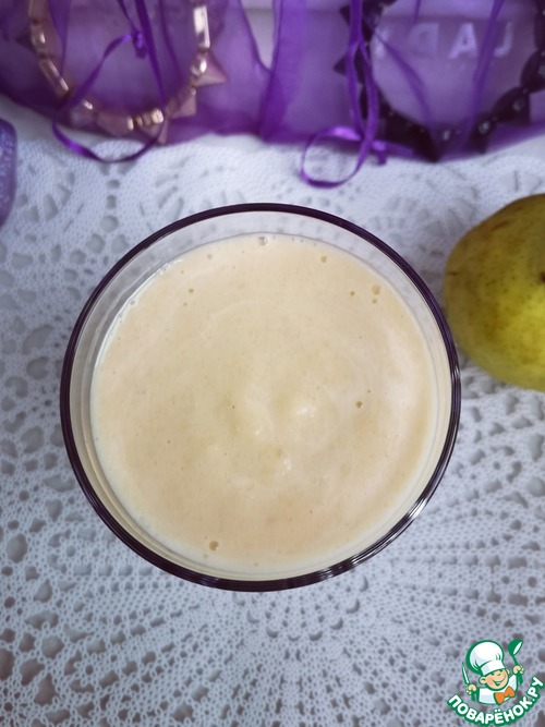 Смузи готов! Разлить по стаканам, украсить по желанию дольками банана или груши и сразу подать к столу.