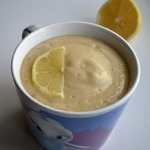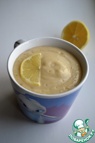 Влить йогурт, чайную ложку лимонного сока и взбить блендером.