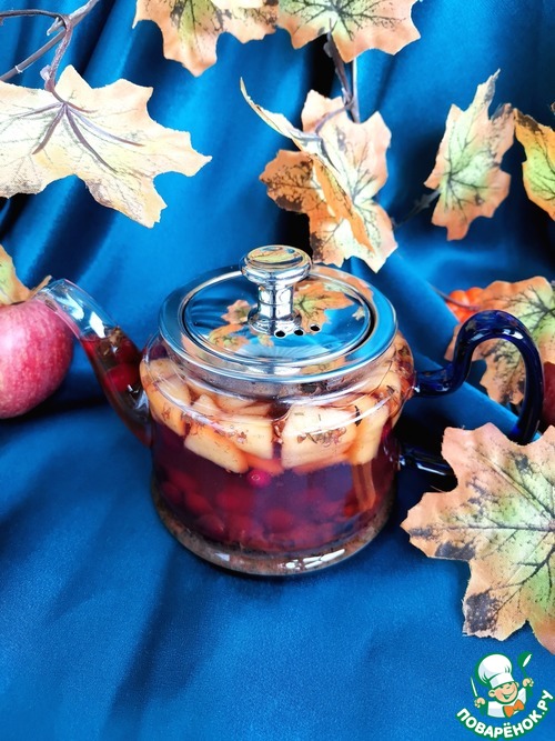 Клюкву перебрать, вымыть и добавить в чайничек к яблоку.