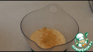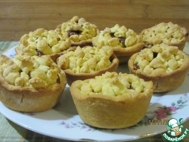 Остаток теста смешаем с 50 граммами муки. Руками разотрем чтобы получилась крупная крошка.