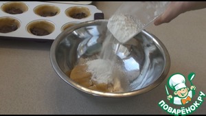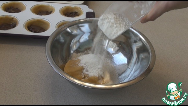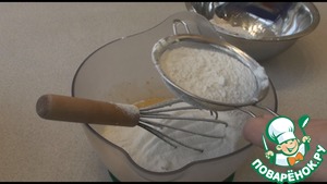 Просеем муку с разрыхлителем в два-три этапа, замесим мягкое тесто.