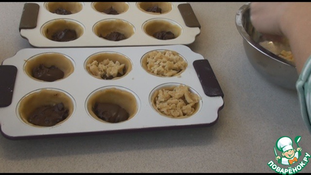 После этого в каждую корзинку выкладываем 1 полную чайную ложку нутеллы.