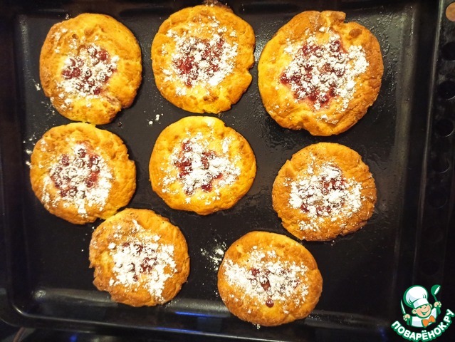 Выпекаем в разогретой духовке при 180°С, 20 минут. Время выпечки зависит от особенностей вашей духовки. Посыпаем сахарной пудрой и по желанию поливаем медом или сиропом.