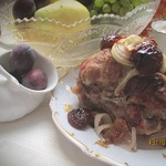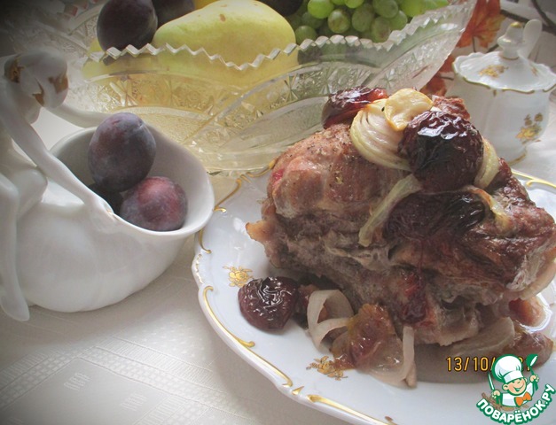 Сытно, вкусно, интересно - свиной окорок со сливами и чесноком. Рекомендую.