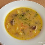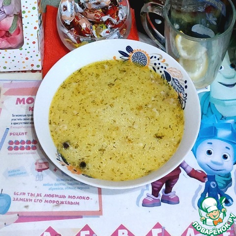 За пять минут до готовности добавляют две столовые ложки сметаны. Я этот шаг пропустила, т. к. мне показалось, что суп получается и так очень жирным.