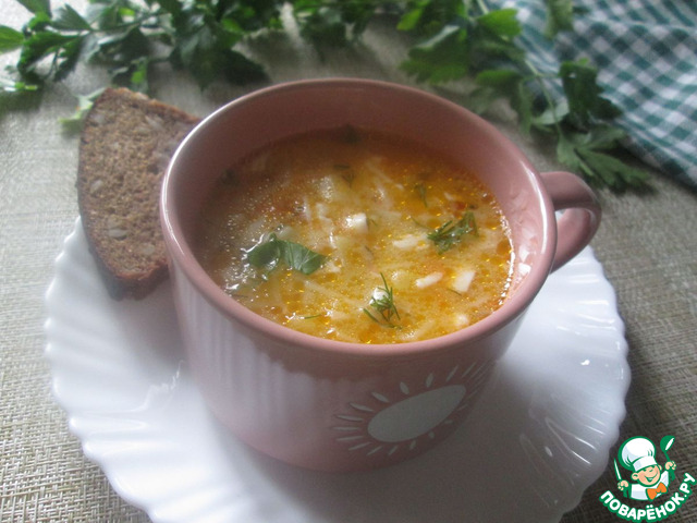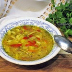 На приготовление этого супа меня вдохновил традиционный осетинский суп - толон. Основа супа - курица, которая варится целиком, картофель и бульон. Толон - это густой, ароматный суп с насыщенным сливочным вкусом. Мой вариант адаптирован под "суровые" городские условия составом продуктов и временем приготовления. Несмотря на изменения суп получился густым, вкусным, сытным и ароматным красивого солнечного цвета!