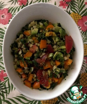 5. Смешать все ингредиенты, добавив специи, соль и масло по вкусу.