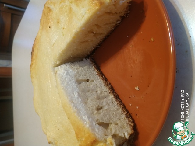 Нижняя часть немного плотновата на мой вкус, а вот творожный слой нежный и воздушный.