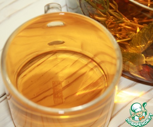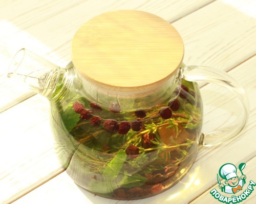 Чайник ополоснуть кипятком, затем поместить в него все ингредиенты (кроме меда).